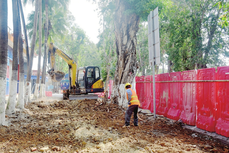 滨河一街人行道升级改造工程动工
