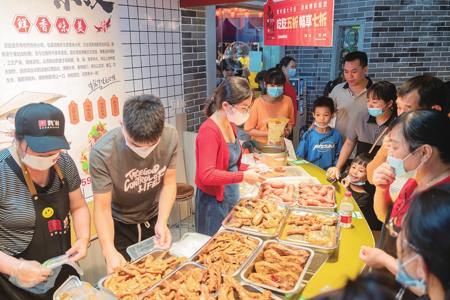 开街当天,籺村热闹非凡,井然有序。进入籺村内可以看到,一楼绝大多数店铺已开门营业,人们或驻足欣赏非遗橱窗,或拍照“打卡”,或进店寻味美食……呈现出文明、健康、有序的游览氛围。