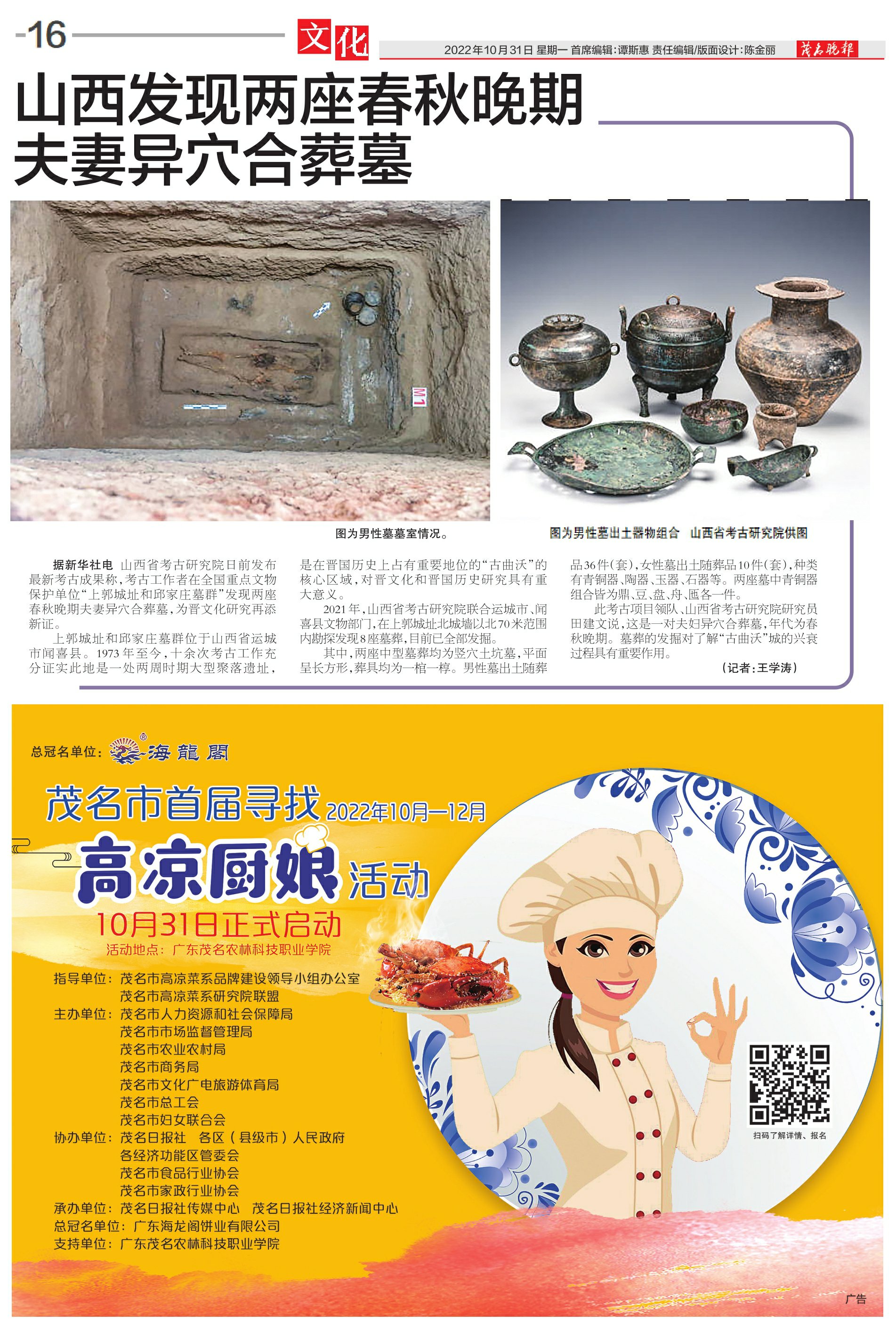 山西发现两座春秋晚期夫妻异穴合葬墓