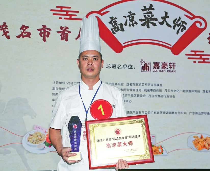 茂名晚报讯 出色的厨艺、特色的调料搭配、精美的摆盘,一道“黑榄焗罗非”让梁海涛在茂名市首届“高凉菜大师”评选总决赛中成功揽获“高凉菜大师”称号。