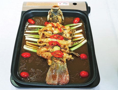 茂名晚报讯 选取茂名本地肥美鲜活的罗非鱼,加上秘制酱料,以姜葱去腥,一道齐聚山海之味的“明炉酱香罗非鱼”,让来自海景湾国际大酒店的中厨师傅陈承德获得“高凉菜大师”的荣誉称号。