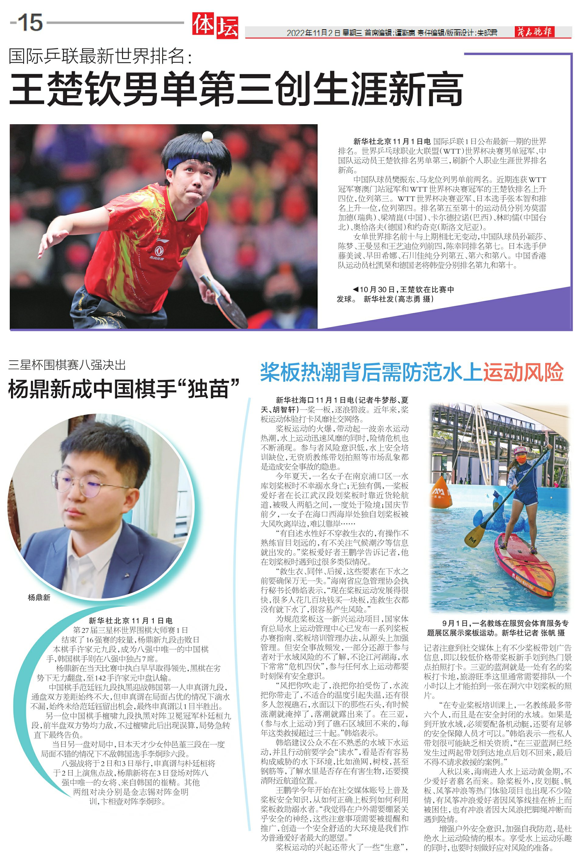 国际乒联最新世界排名:王楚钦男单第三创生涯新高