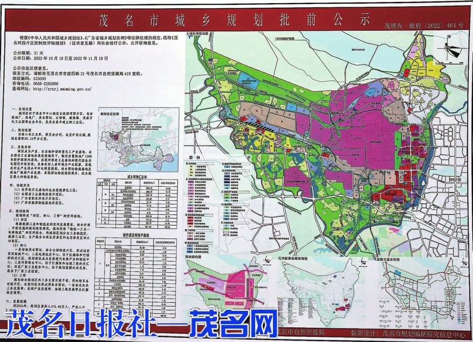 茂名晚报讯记者李君平 河西片区的未来如何发展?10月19日,《茂名河西片区控制性详细规划》(征求意见稿)在市自然资源局官网上进行公示,公示日期为10月19日至11月18日,共31天。根据规划,规划区位于茂名市中心城区北组团河西片区,定位为世界级石化基地的生态型能源化工区、全国老工业基地改造示范区、广东省新农村连片示范区和广东省能源物流基地示范区。