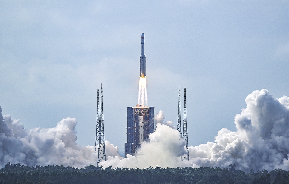 11月12日10时03分,搭载着天舟五号货运飞船的长征七号遥六运载火箭在我国文昌航天发射场准时点火发射,约10分钟后,船箭成功分离并进入预定轨道,飞船太阳能帆板顺利展开工作,发射取得圆满成功。 新华社记者郭程摄