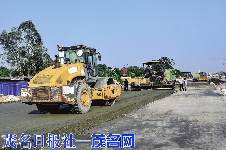 11月12日,记者在市区双山八路与茂名大道交汇处路段看到,施工人员正在加紧进行路面水稳层铺设施工,争取双山八路早日建成通车。