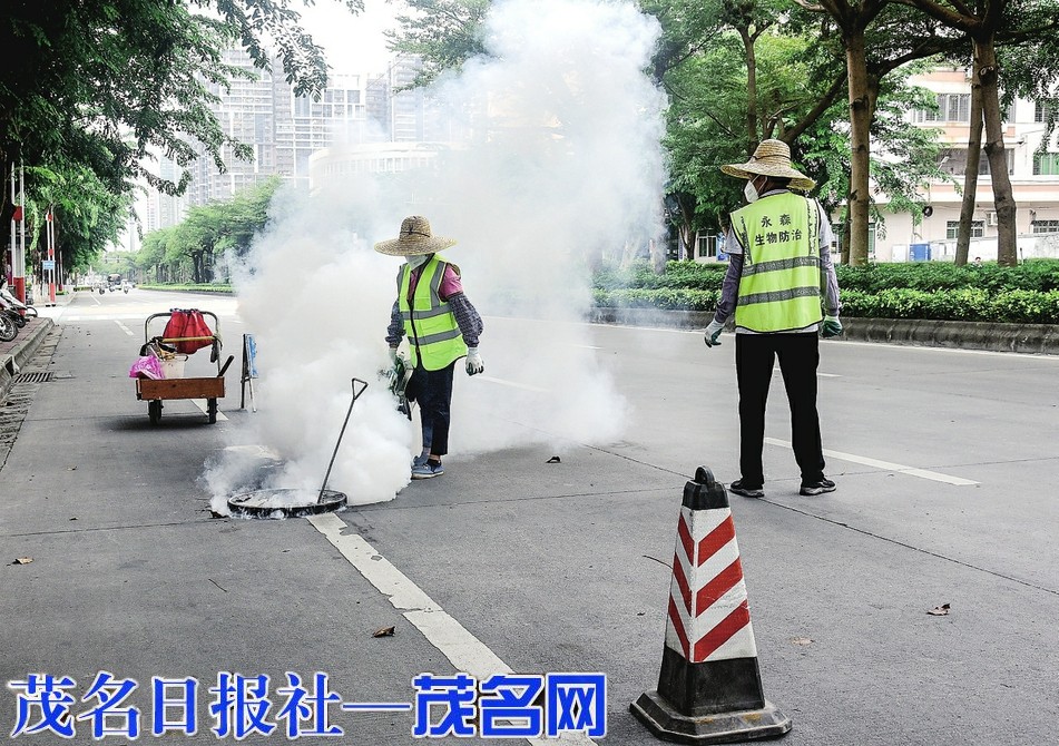 昨日,记者在市区西粤中路看到,工作人员拿着热烟雾机对花基草丛、水道沟渠等喷灭蚊药剂,彻底清除蚊虫孳生地,营造干净、卫生的生活环境。