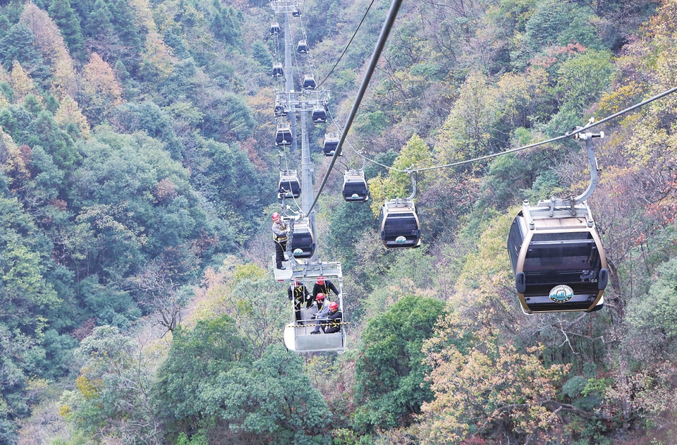 11 月14日,技术人员对张家界市武陵源景区天子山索道进行检测。