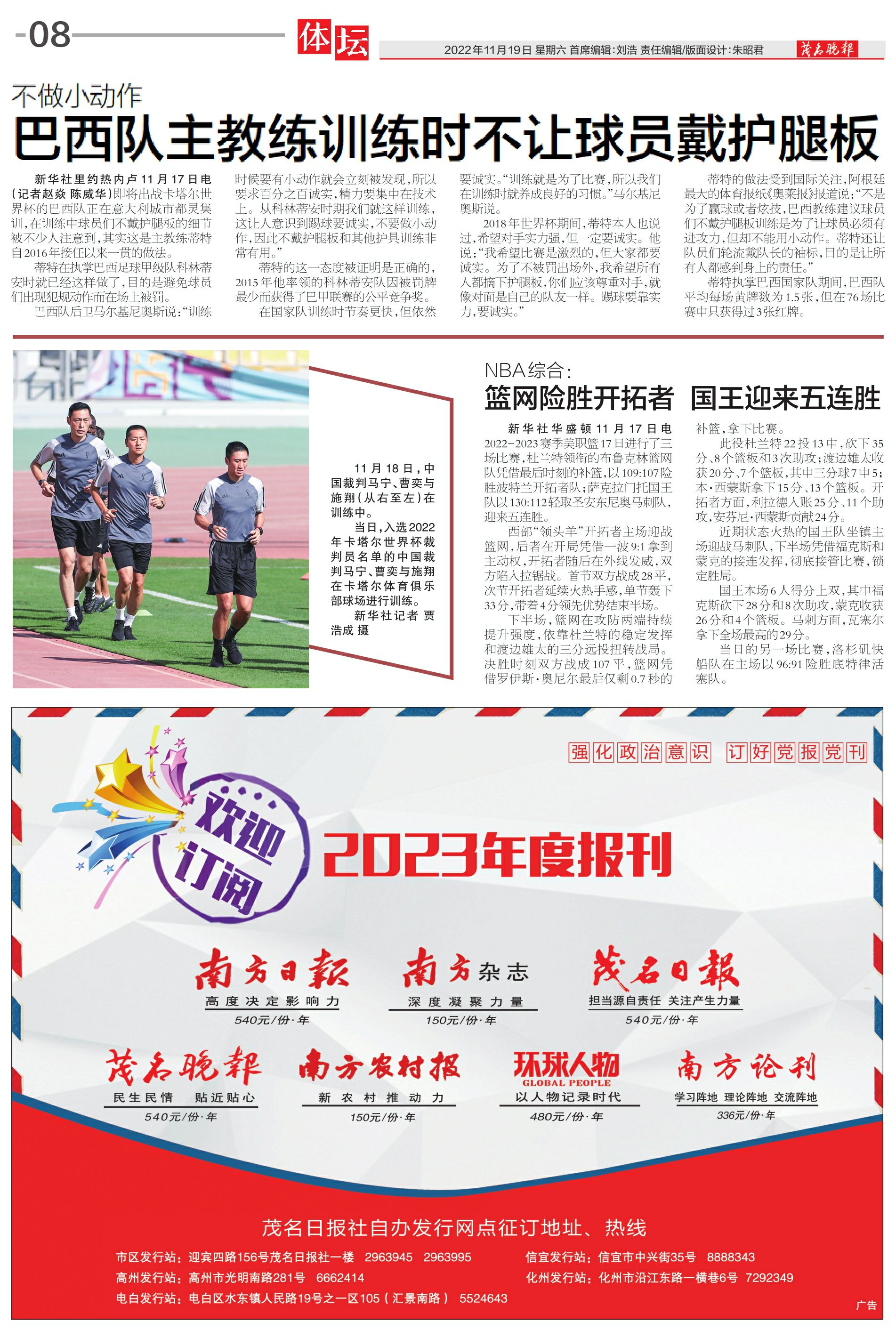 巴西队主教练训练时不让球员戴护腿板