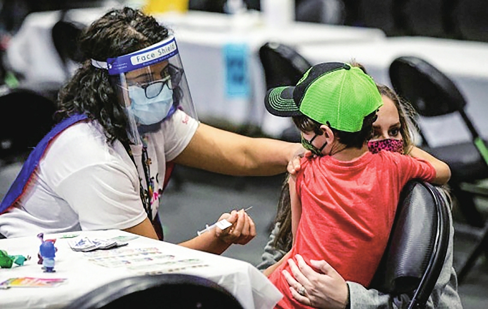 2021年12月12日,在加拿大多伦多的一处新冠疫苗接种中心,接种员准备为一名儿童接种疫苗。新华社发(邹峥摄)