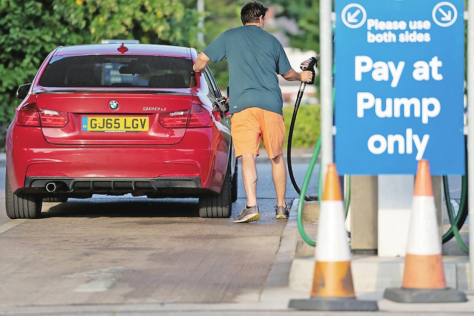 9月2日,在英国曼彻斯特,一名男子在加油站加油。新华社发(乔恩·休珀摄)