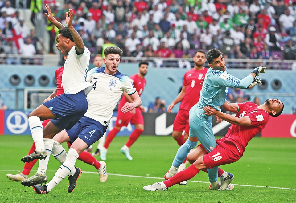 当日,在卡塔尔多哈哈里发国际体育场进行的2022卡塔尔世界杯足球赛B组比赛中,英格兰队以6比2战胜伊朗队。