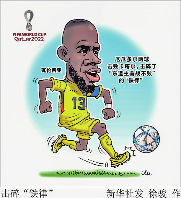 时隔8年回归,头球被吹越位,前插造点打进,头球再顶破门……33岁的队长恩纳·瓦伦西亚20日晚在卡塔尔世界杯揭幕战用两个进球,击碎了“东道主首战不败”的“铁律”,展现了厄瓜多尔队史第一射手的底蕴和霸气。