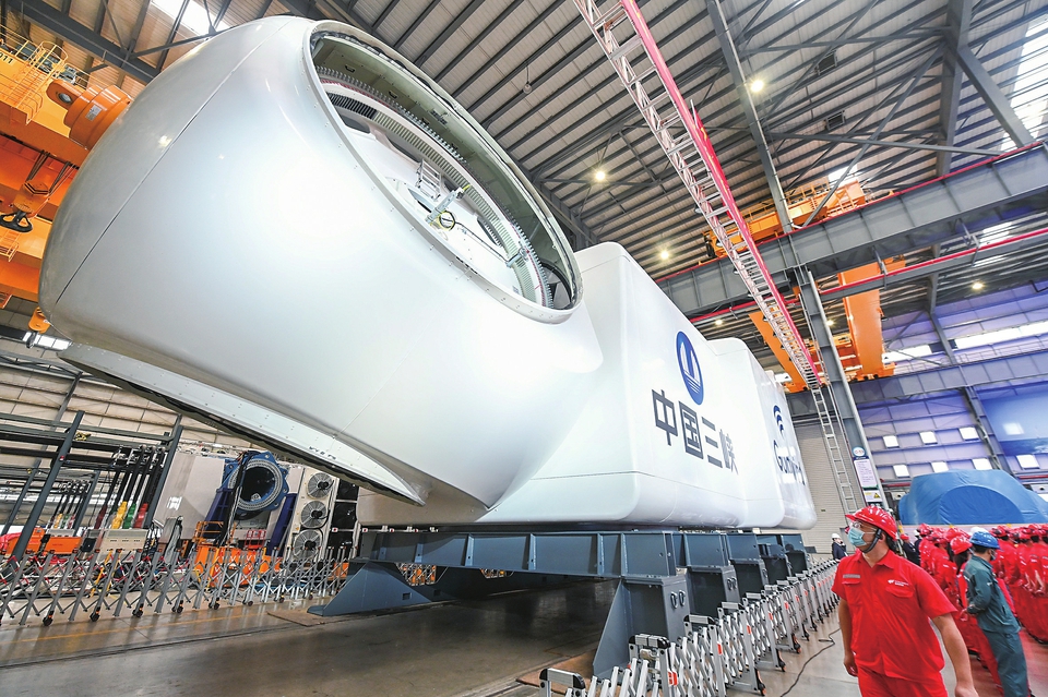 这是11月23日在福建三峡海上风电国际产业园下线的16兆瓦海上风电机组。