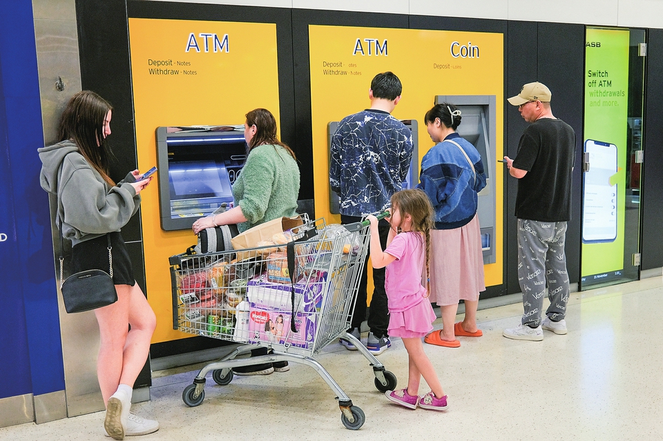 11月21日,人们在新西兰最大城市奥克兰的一处自动提款机前等待取款。新华社发 赵纲 摄