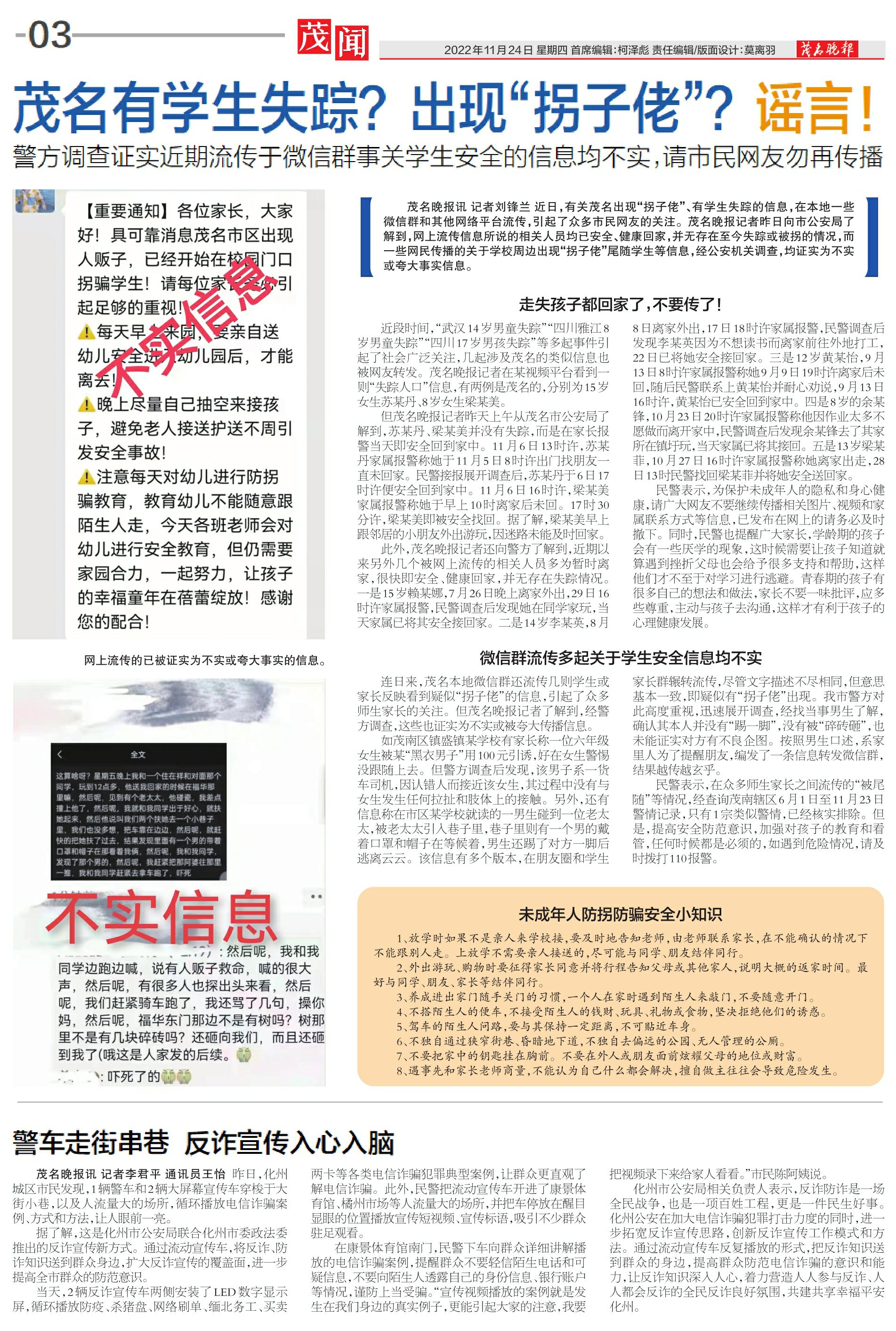 茂名有学生失踪?出现“拐子佬”?谣言!