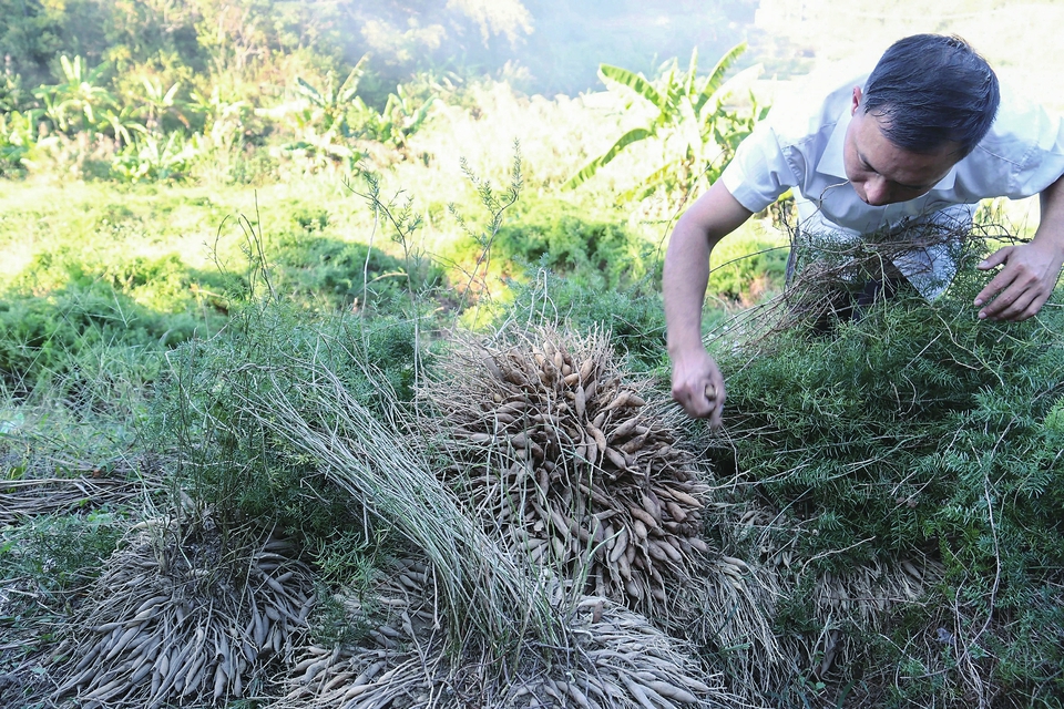 收获南药天冬。茂名晚报通讯员黄瑜摄