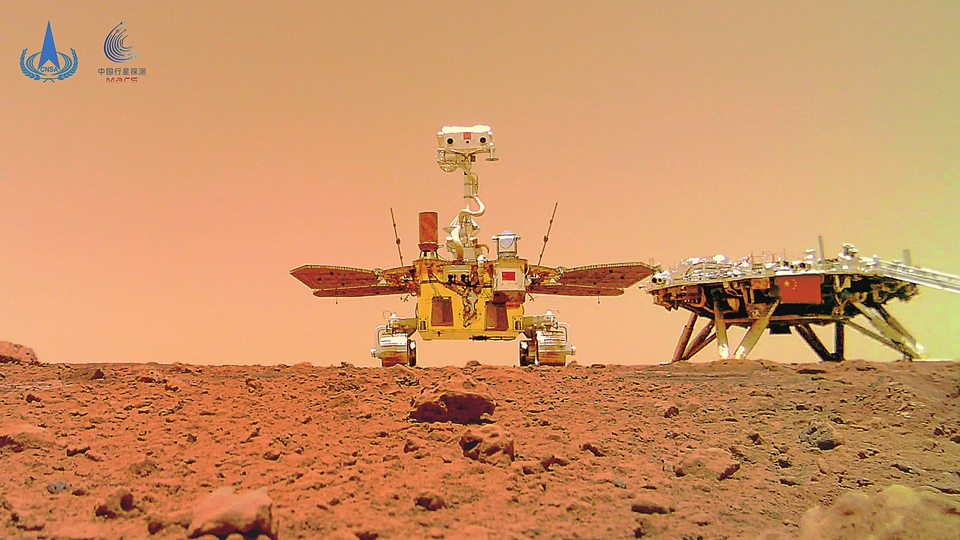 新华社记者宋晨、胡喆这是我国首次火星探测任务“着巡合影”图。 新华社发(国家航天局供图)