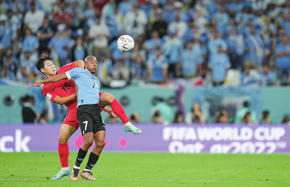 当日,在卡塔尔赖扬教育城球场进行的2022卡塔尔世界杯足球赛H组比赛中,乌拉圭队以0比0战平韩国队。