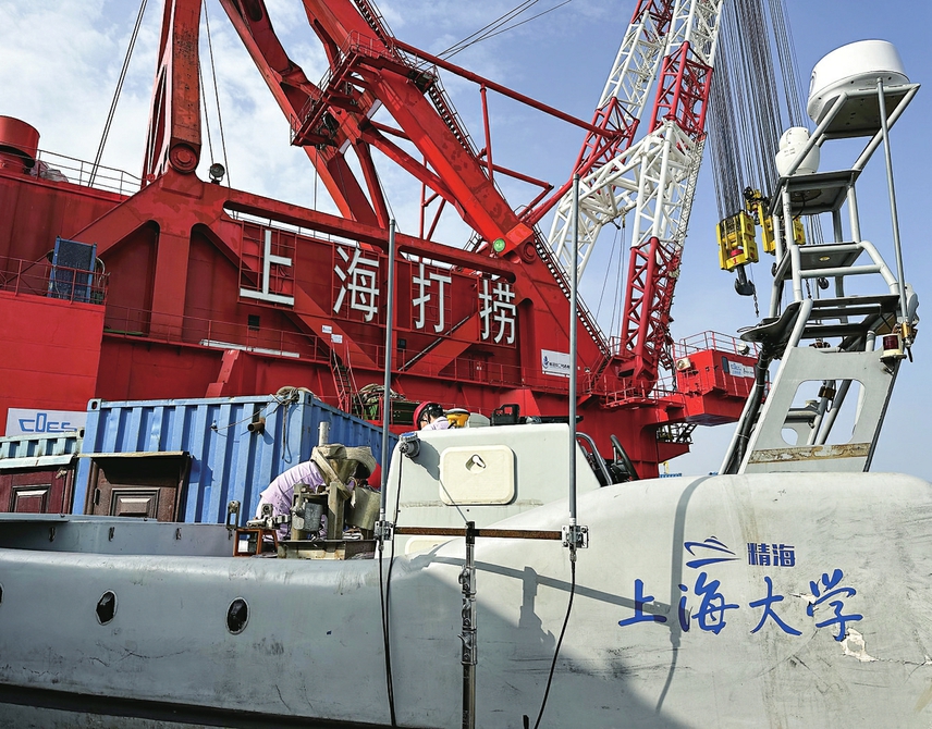 上海大学无人艇工程研究院和人工智能研究院还为长江口二号古船量身定制了“精海6号”环境探测无人艇,在艇肚子里携带了80厘米直径的圆柱形“采样蛋宝宝”,到作业区域后自动布放到沉船区域采集数据。