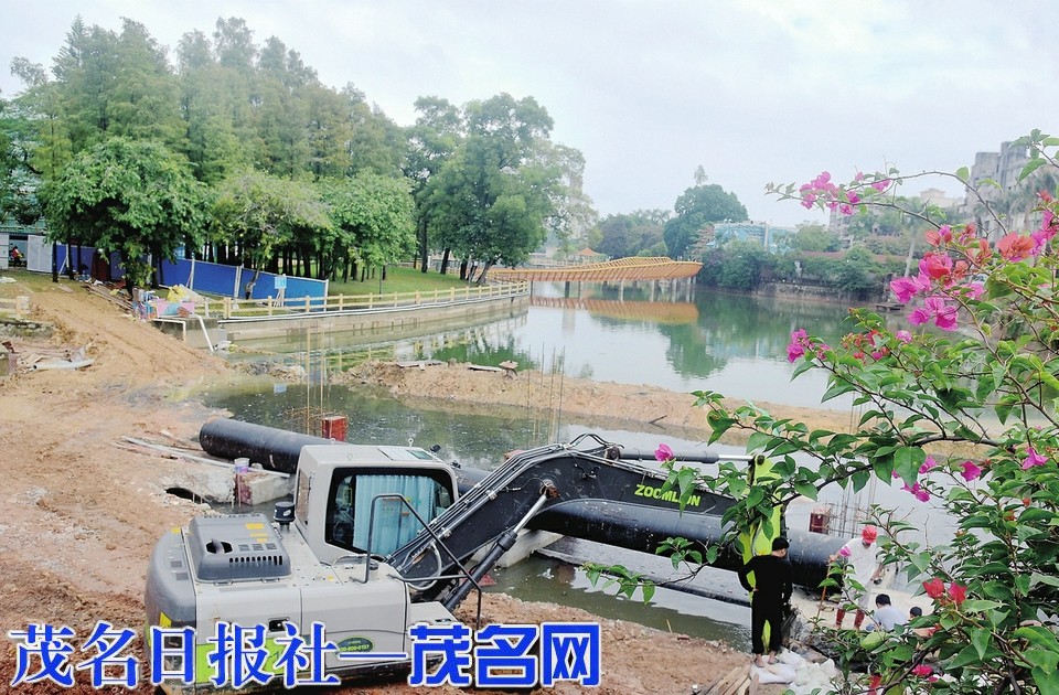 昨日,在市区新湖公园西门排水闸门改造工程施工现场,施工人员正在加紧施工,新建2座排水闸门,拓宽泄洪通道,增强防洪排涝能力。