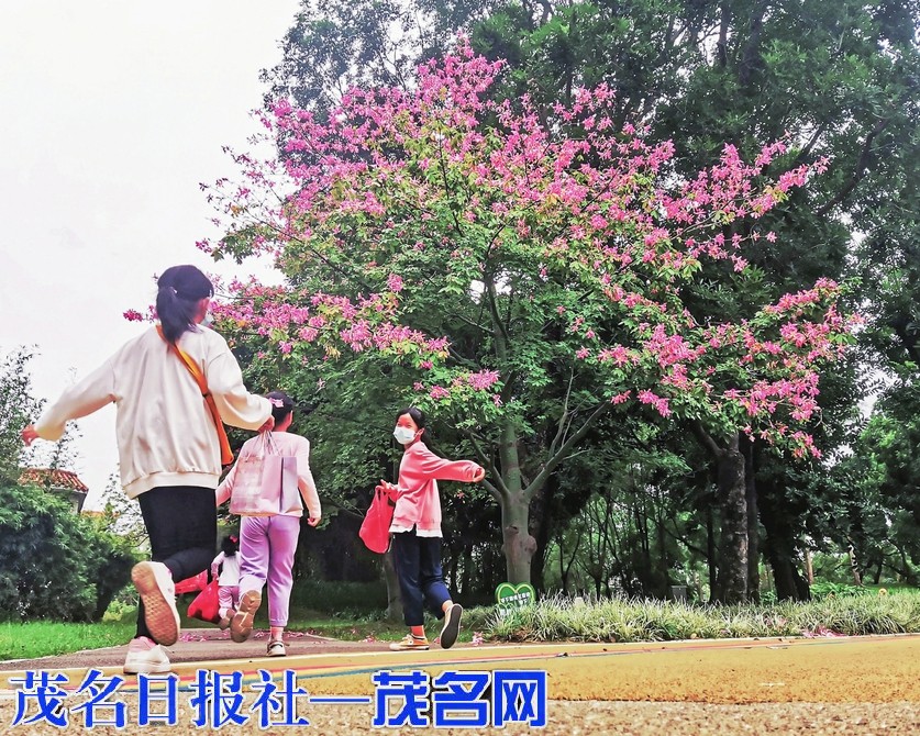 昨天,在市区新湖公园,一棵盛开的异木棉树吸引了游客观赏拍照,成为一道亮丽打卡景点。