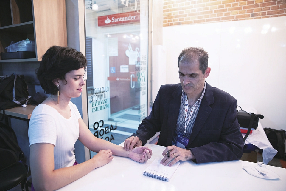 在大会现场,一名巴西本土“老中医”引起了记者的注意。这名“老中医”名叫保罗·贡扎尔韦斯,今年49岁,投身中医领域已经超过20年,虽然是土生土长的巴西人,但他能熟练地为病人诊疗针灸,用中文开药方。