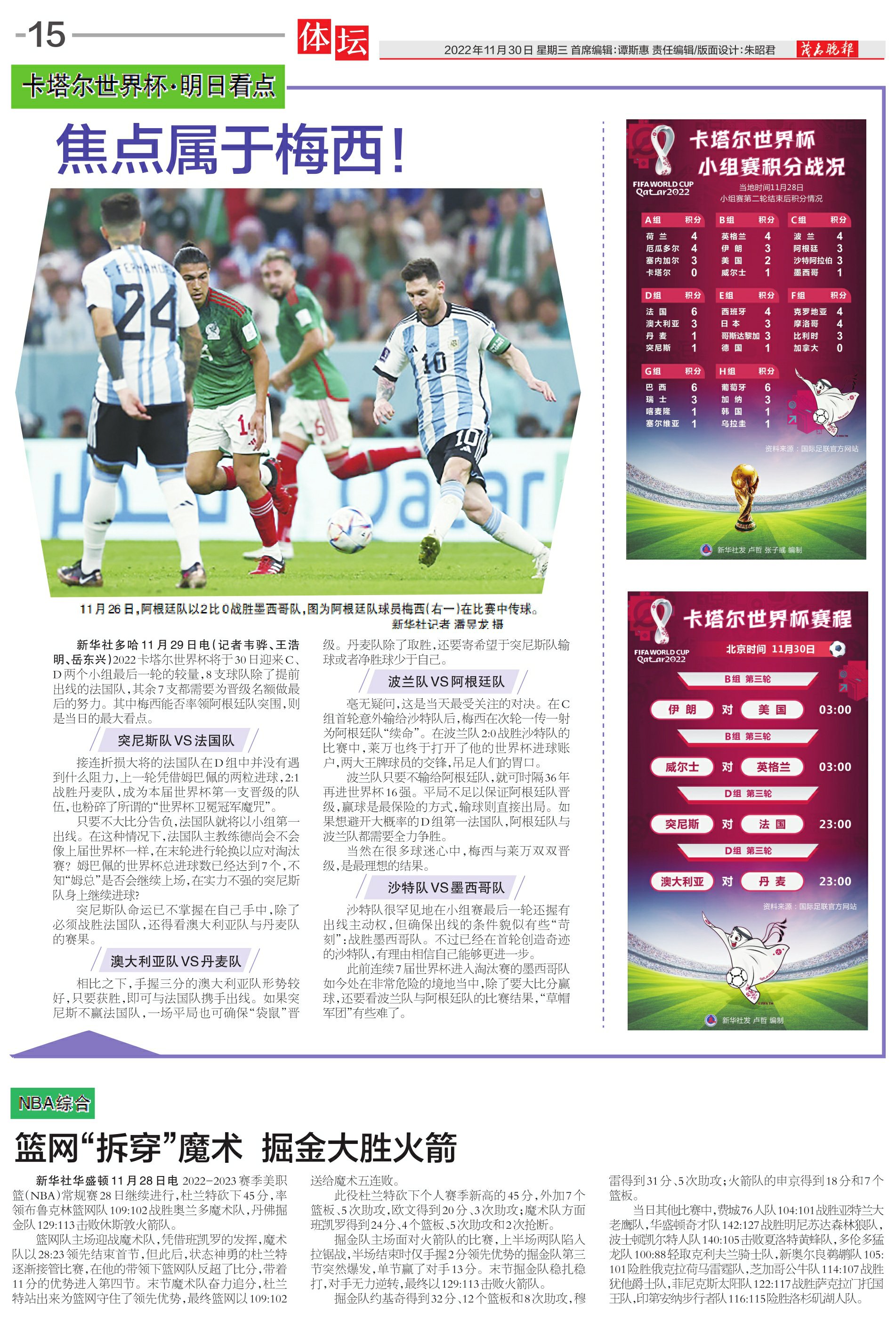 卡塔尔世界杯小组赛积分战况