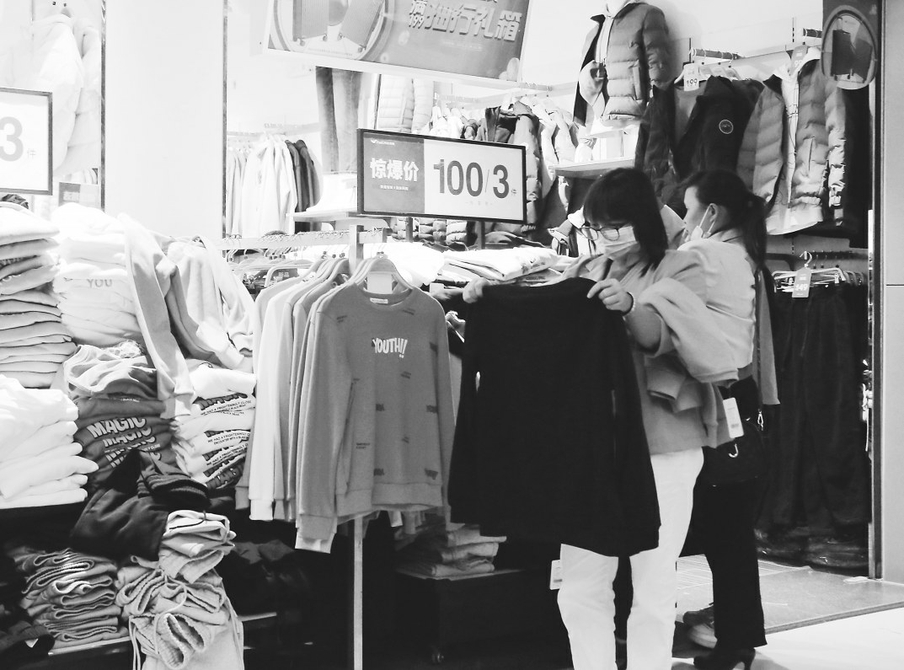 11月30日,受冷空气的影响,市区气温下降,市民在商店选购冬衣防寒保暖。茂名日报社全媒体记者李颜东 摄