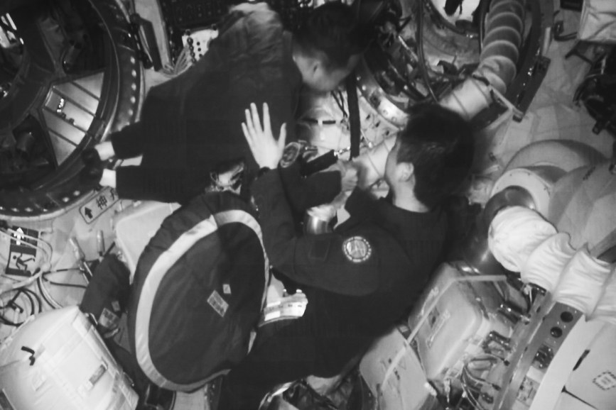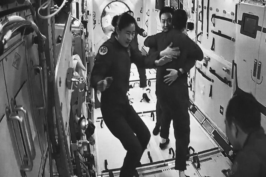 这是中国载人航天史上首次有两个航天员乘组在“太空会师”,也是中国航天员首次在空间站迎接神舟载人飞船来访。