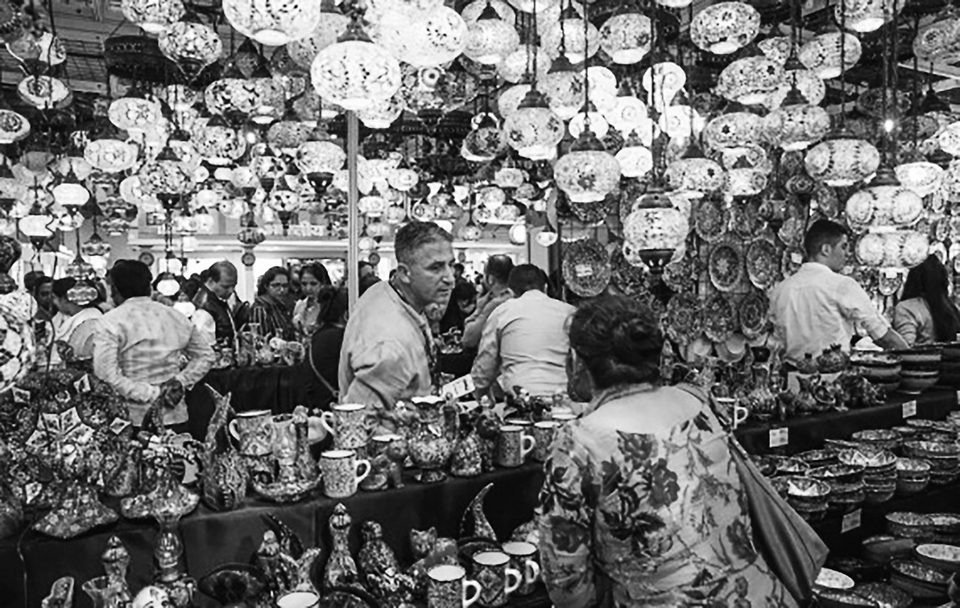 11月22日,人们在印度新德里的2022印度国际贸易展销会上购买特色工艺品。 新华社发(贾韦德·达尔 摄)