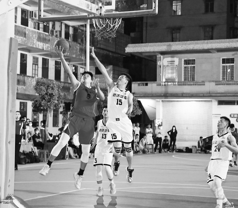 ▲ 参赛运动员在篮球场上展开激烈角逐。茂名日报社全媒体记者岑稳摄