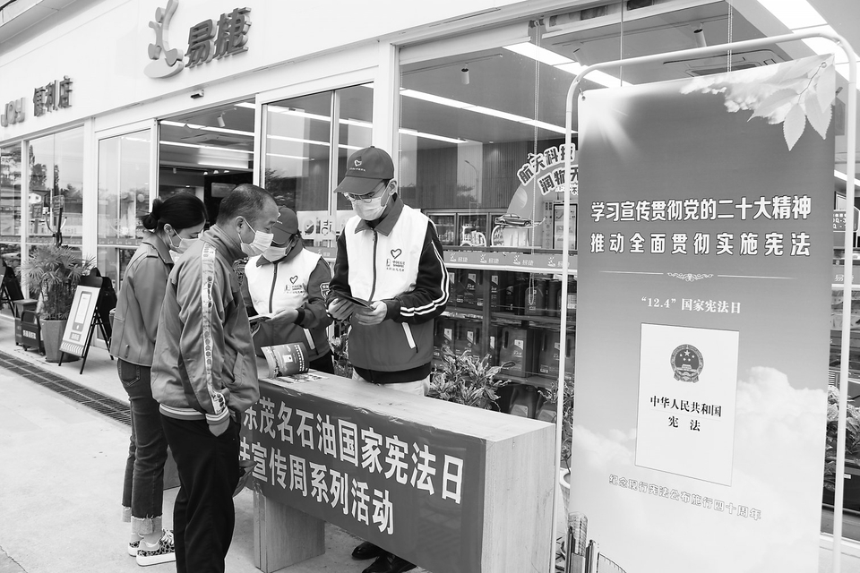 茂名晚报讯记者柯泽彪通讯员李叶霞12月4日是第九个国家宪法日。中国石化茂名石油分公司开展“学习宣传贯彻党的二十大精神,推动全面贯彻实施宪法”为主题的系列宣传活动,以“听、说、看、写”齐动,深入宣传习近平法治思想,大力弘扬宪法精神。