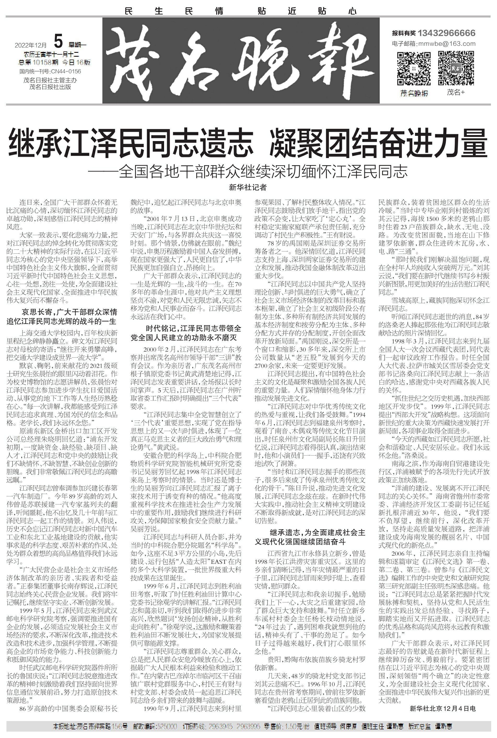 继承江泽民同志遗志 凝聚团结奋进力量