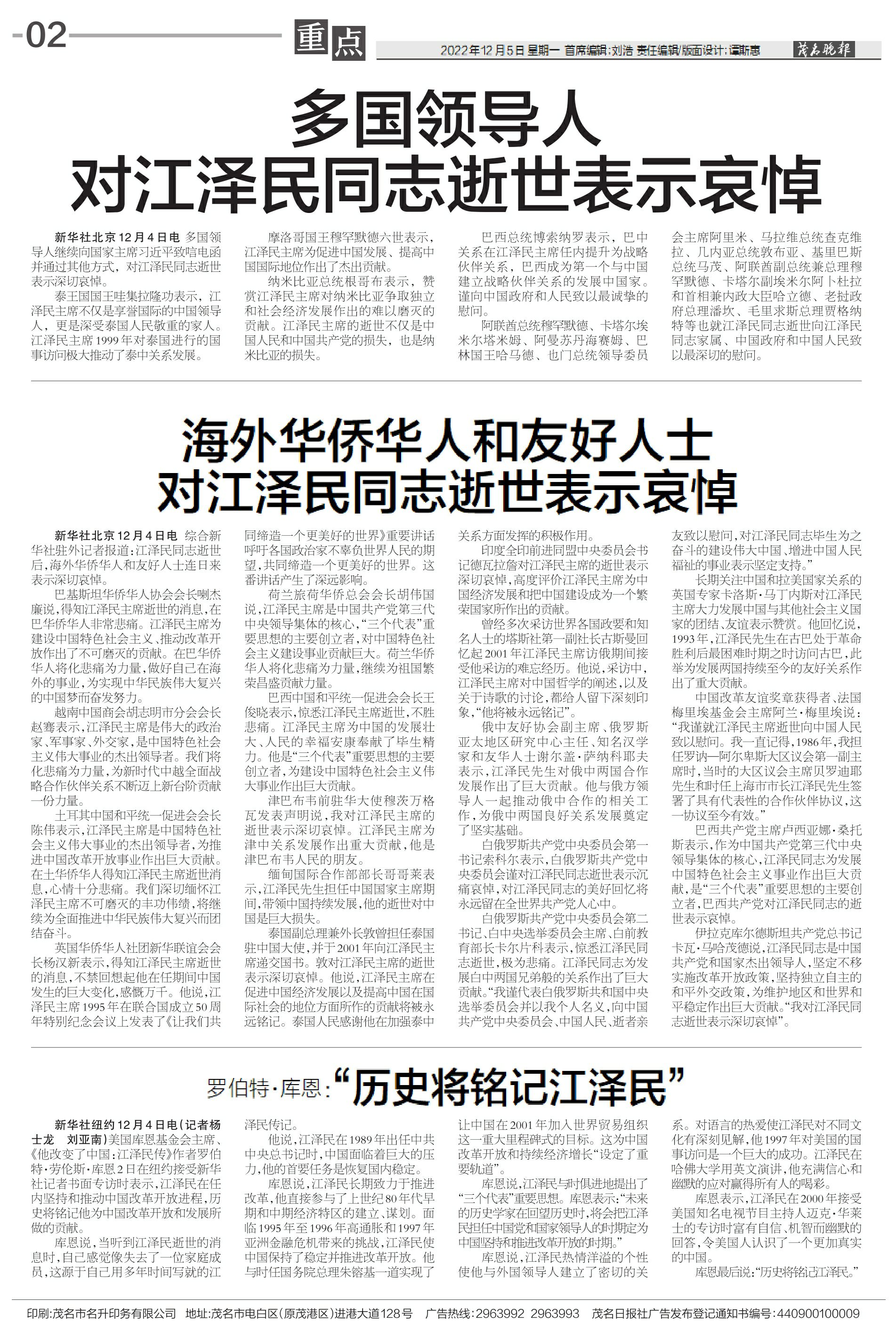 海外华侨华人和友好人士对江泽民同志逝世表示哀悼