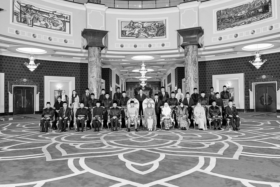 12月3日,马来西亚最高元首阿卜杜拉(前左六)和总理安瓦尔(前左五)在吉隆坡国家皇宫与新内阁成员合影。新华社发(马来西亚新闻局供图)
