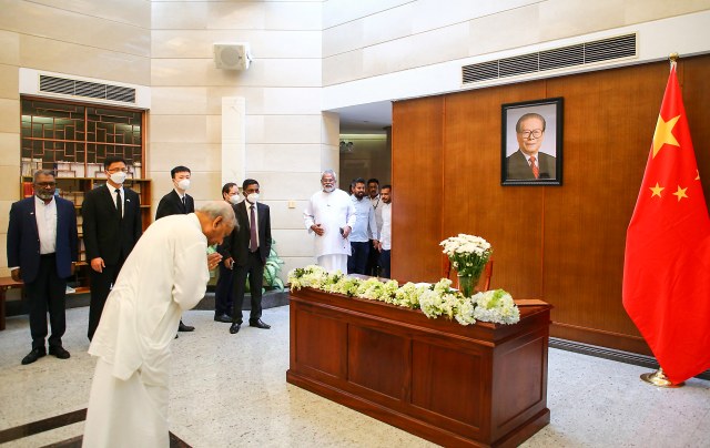 12月2日,斯里兰卡总统维克拉马辛哈在中国驻斯里兰卡大使馆吊唁江泽民同志。 新华社发(萨米拉摄)