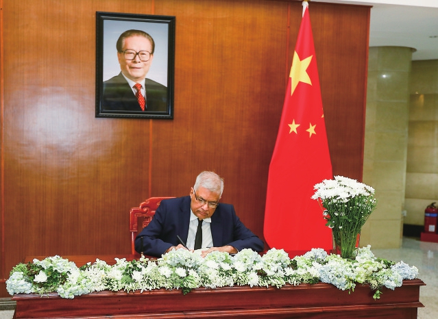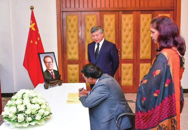 12月2日,斯里兰卡总理古纳瓦德纳在中国驻斯里兰卡大使馆吊唁江泽民同志。 新华社记者 车宏亮摄