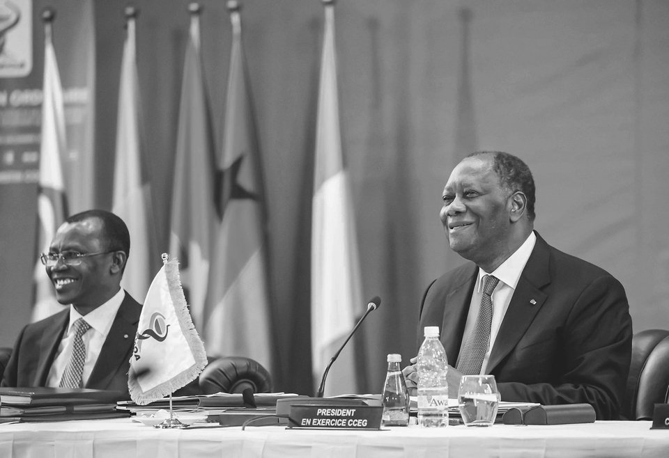 西非经济货币联盟成立于1994年,现有贝宁、布基纳法索、科特迪瓦、马里、尼日尔、塞内加尔、多哥和几内亚比绍8个成员国。 12月5日,在科特迪瓦经济首都阿比让,科特迪瓦总统瓦塔拉(右)出席西非经济货币联盟第23届国家元首和政府首脑会议。新华社发(伊万·宋摄)