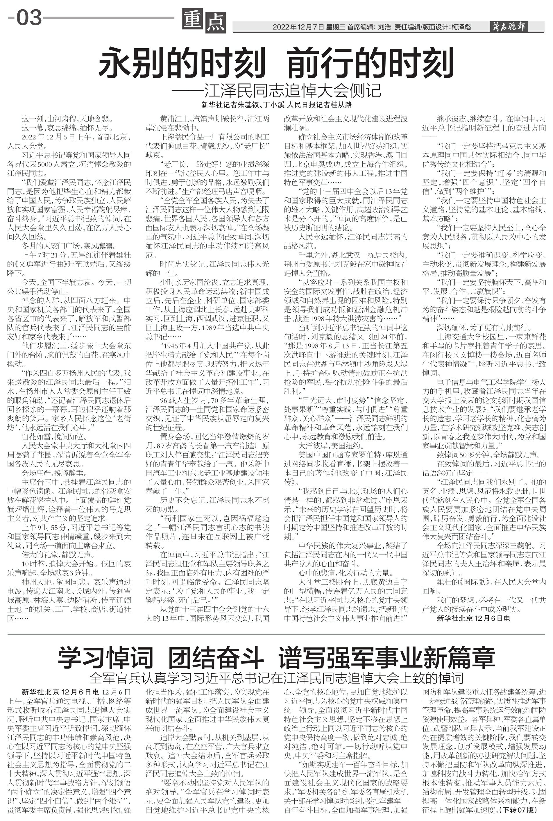 学习悼词 团结奋斗 谱写强军事业新篇章