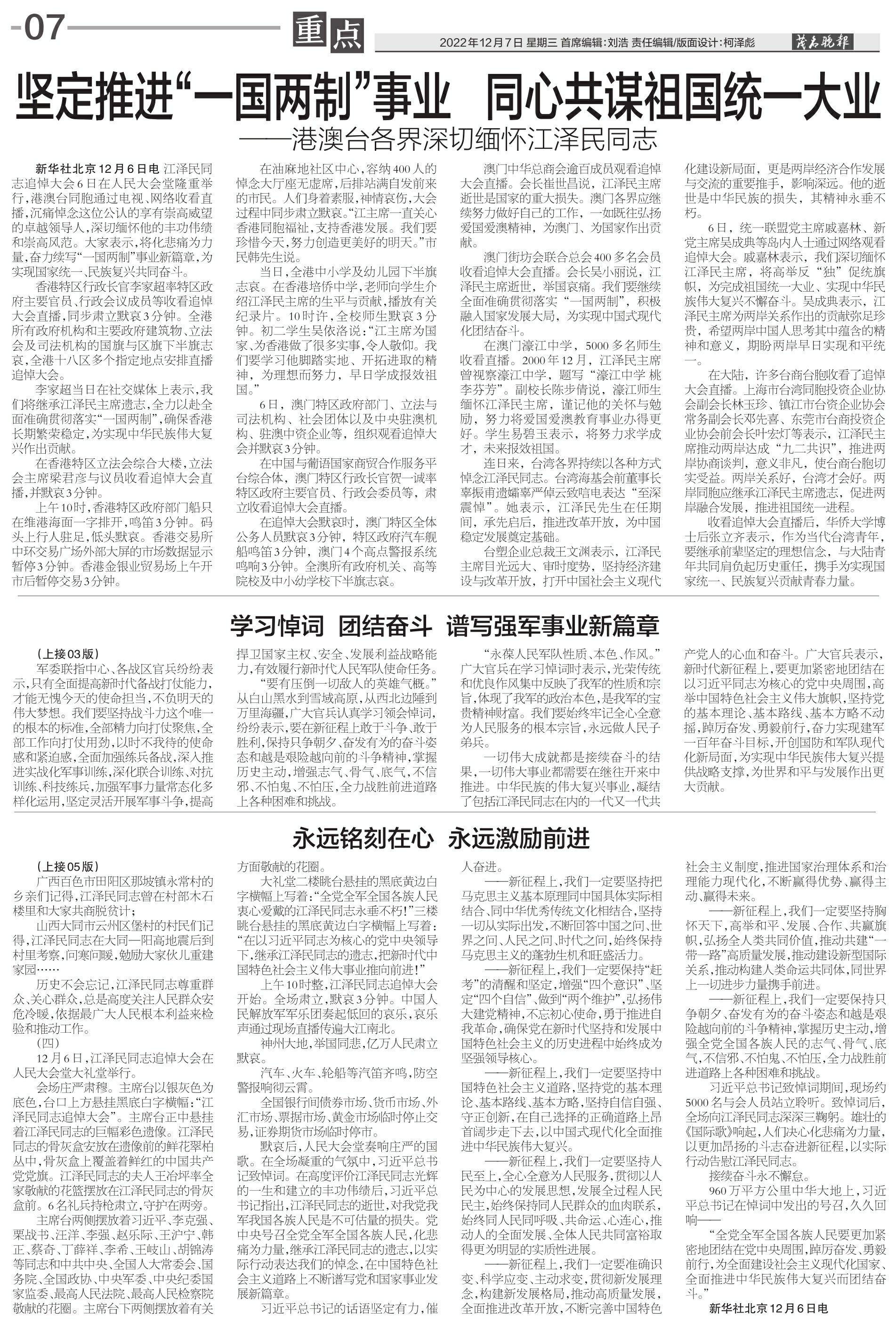 坚定推进“一国两制”事业 同心共谋祖国统一大业