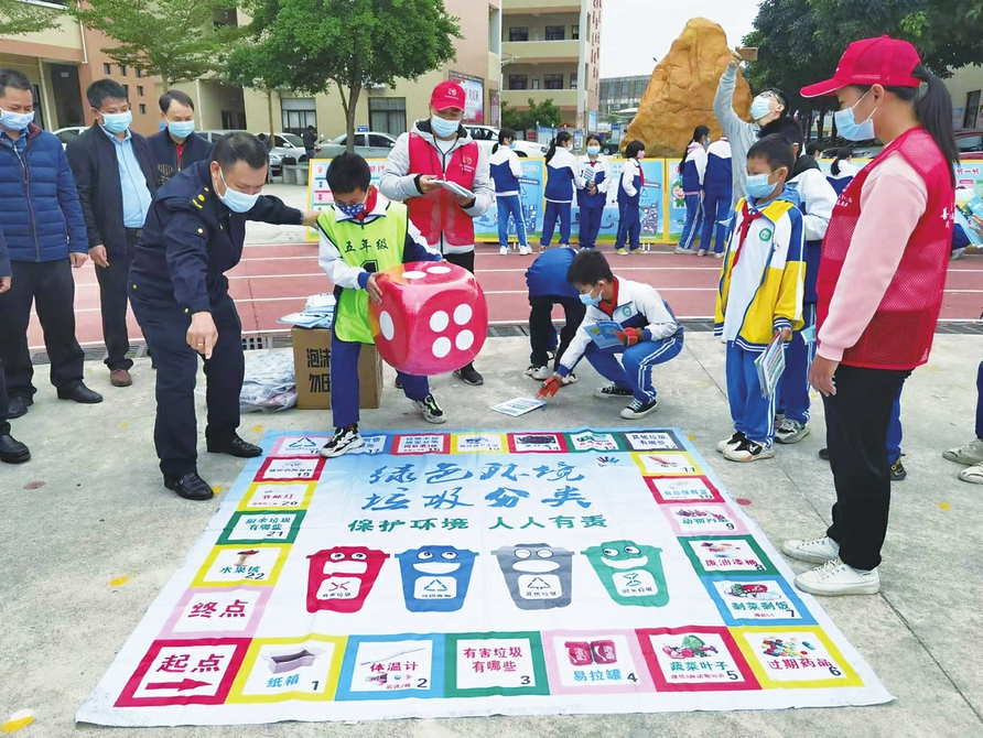 茂名晚报讯 记者柯诗华 为进一步巩固垃圾分类治理成果,让垃圾分类理念深入人心,提升学生对垃圾分类的关注度,培养青少年的环保理念,昨日上午,由市城管执法局、茂南区城管执法局联合茂南区教育局举办的“垃圾分类齐参与·引领校园新风尚”的垃圾分类进校园主题活动在茂南区鳌头中心小学举行。
