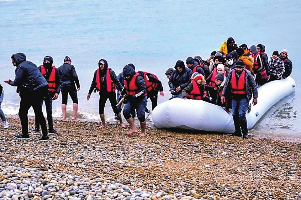 2021年11月24日,移民乘船抵达英国邓杰内斯角海岸。新华社发(史蒂夫·芬恩摄)