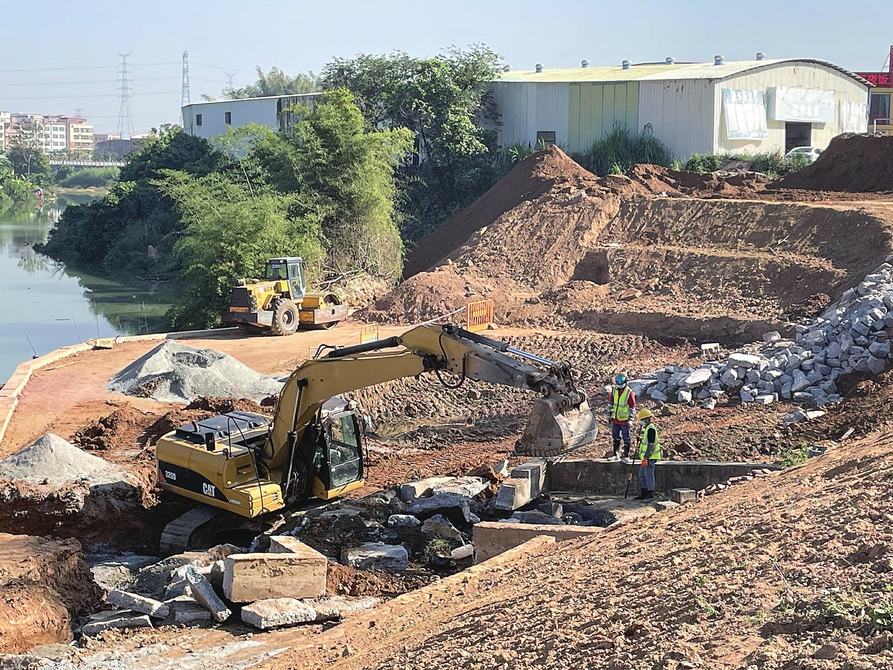 昨日,在市区小东江保利滨江至钟鼓桥生态步道项目施工现场,施工人员正加紧铺设步道亲水平台,争取工程在春节前完工。