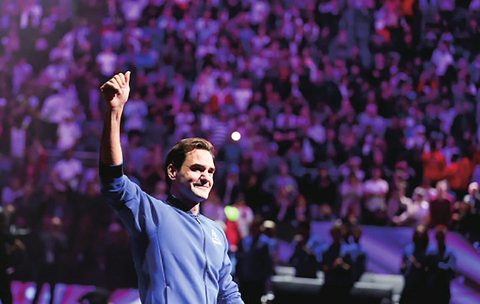 9月24日凌晨时分,在英国伦敦O2体育馆内,41岁的费德勒刚刚结束自己职业生涯的最后一场比赛。手握20个大满贯冠军,这位网球“天王”选择在众人的陪伴和注目下告别,结束自己超过24年的职业旅程:他和纳达尔以及焦科维奇、穆雷等人一一拥抱,尔后缓缓绕场一周,向全场起立鼓掌的观众用力挥动双手,时而拍拍左胸,时而献上飞吻。