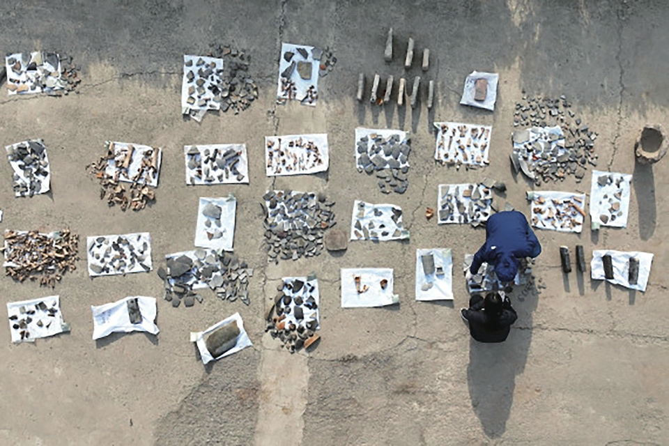 12月16日,考古人员正在对河北柏人城遗址发掘的部分遗存进行清理分类。 (陈雷摄)