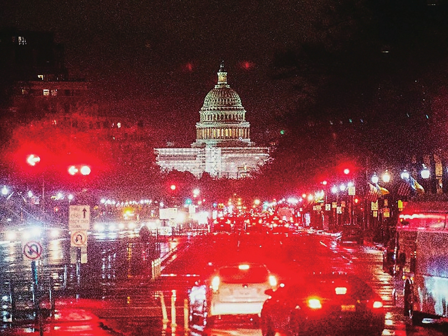 这是12月22日在美国华盛顿拍摄的雨中的车辆和国会大厦。新华社记者刘杰摄