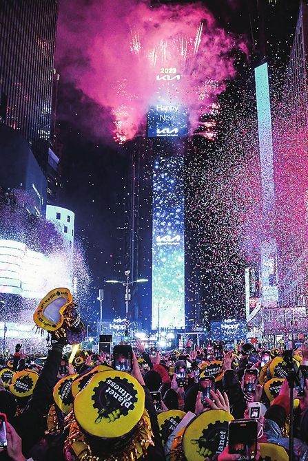2023年1月1日,人们在美国纽约时报广场参加跨年活动。新华社发(朱子于摄)
