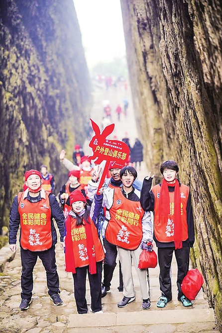 2023年全国新年登高健身大会1月1日在浙江江山和湖南张家界两地举办主会场活动,两个主会场的登高活动分别在江山的江郎山风景区和张家界武陵源风景区进行。优美的自然环境中,登山爱好者上至耄耋老人,下到垂髫孩童,或奋力攀登、或徐步缓行,悠然自得,其乐融融。