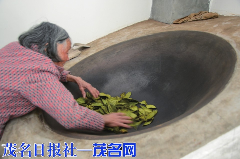 黄婆婆用老式制茶。 茂名晚报记者李光耀 摄