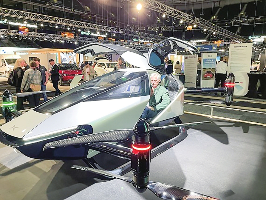 去年4月29日,参观者在瑞典斯德哥尔摩举办的电动车展上体验小鹏汇天的飞行汽车。新华社记者付一鸣摄